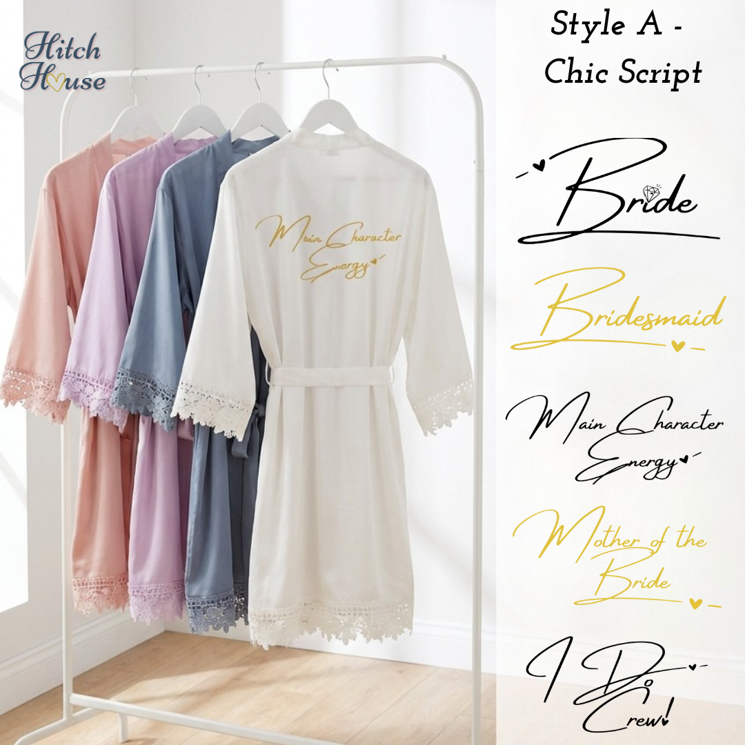 Made from luxe satin polyester with delicate floral lace detailing on the sleeves, this robe feels just as good as it looks. It’s designed for pre-wedding pampering, bridal party lounging, or a cheeky matching moment for the entire “I Do Crew.”
